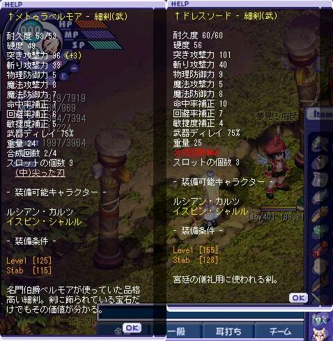 ちなみに費用はドレスソード本体で7m、強化剤1.8m、MR代3.2m×2