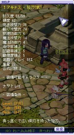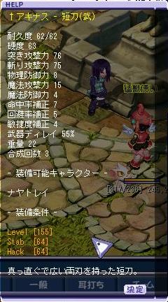 その後ご飯を挟む際に露店放置して食後に戻って狩り再開したらまさかの交渉がきて「15mとアキナス(Lv155短刀)でどうでしょう?」と聞かれてディルと相談した後承諾、交換しましたb