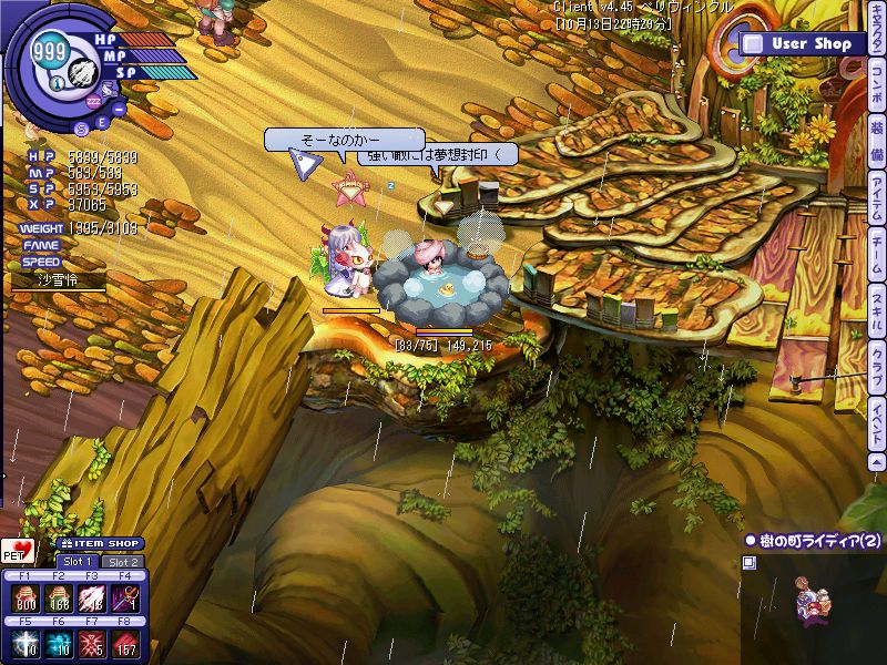 で、夕食前に露店状況を見ると放置している僕のキャラがいるマップの中にチーム員がいるみたいで、探してみたら近くでゆっきーが放置してましたw