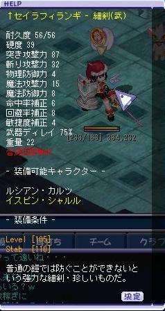 と言うことで前にディルクスsからもらったセイラフィランギを装備!